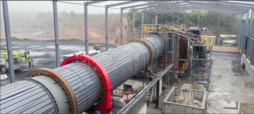 隨著煤泥逐漸干燥,在抄板作用下向出料端移動。出料前,磁選裝置自動清理混入的金屬雜質,保障成品純度。整個過程中,支撐系統的組合式托輪平穩承載滾筒,液壓減震裝置化解運轉沖擊,SKF 軸承配合自動潤滑,確保設備連續穩定運行。